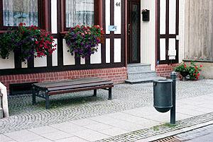Der Papierkorb und die Bank, natürlich ebenfalls aus unserer Kollektion "City", unterstützen wirkungsvoll den gepflegten und edlen Eindruck dieses Hauses.