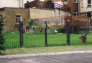 Auch beim Filigranzaun bieten wir neben den Zaunfeldern auch passende Türen und Tore an. Wie das Bild zeigt, sind selbst große Doppelflügeltore kein Problem.