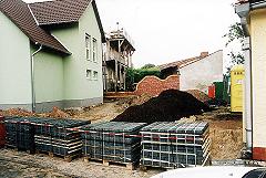 Hausumfeld vor und nach dem Setzen einer neuen Zaunanlage zeigen. |